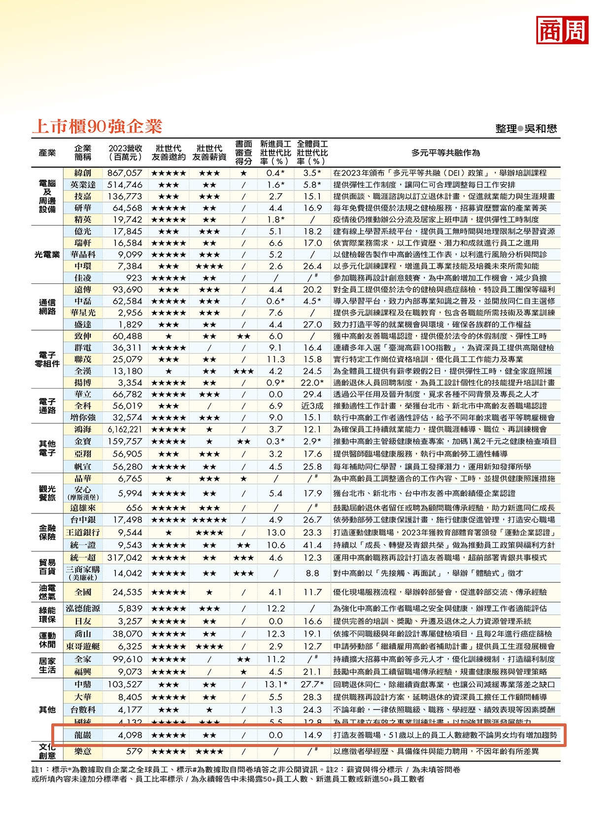 商業周刊與104人力銀行合作進行「DEI壯世代百強企業」大調查,大規模篩選壯齡聘僱友善企業進行調查,本次評選出的百強企業,近三年平均每股盈餘(EPS)皆為正成長,也顯示即使企業實現壯世代友善,依然能創下優於同業的業績表現。