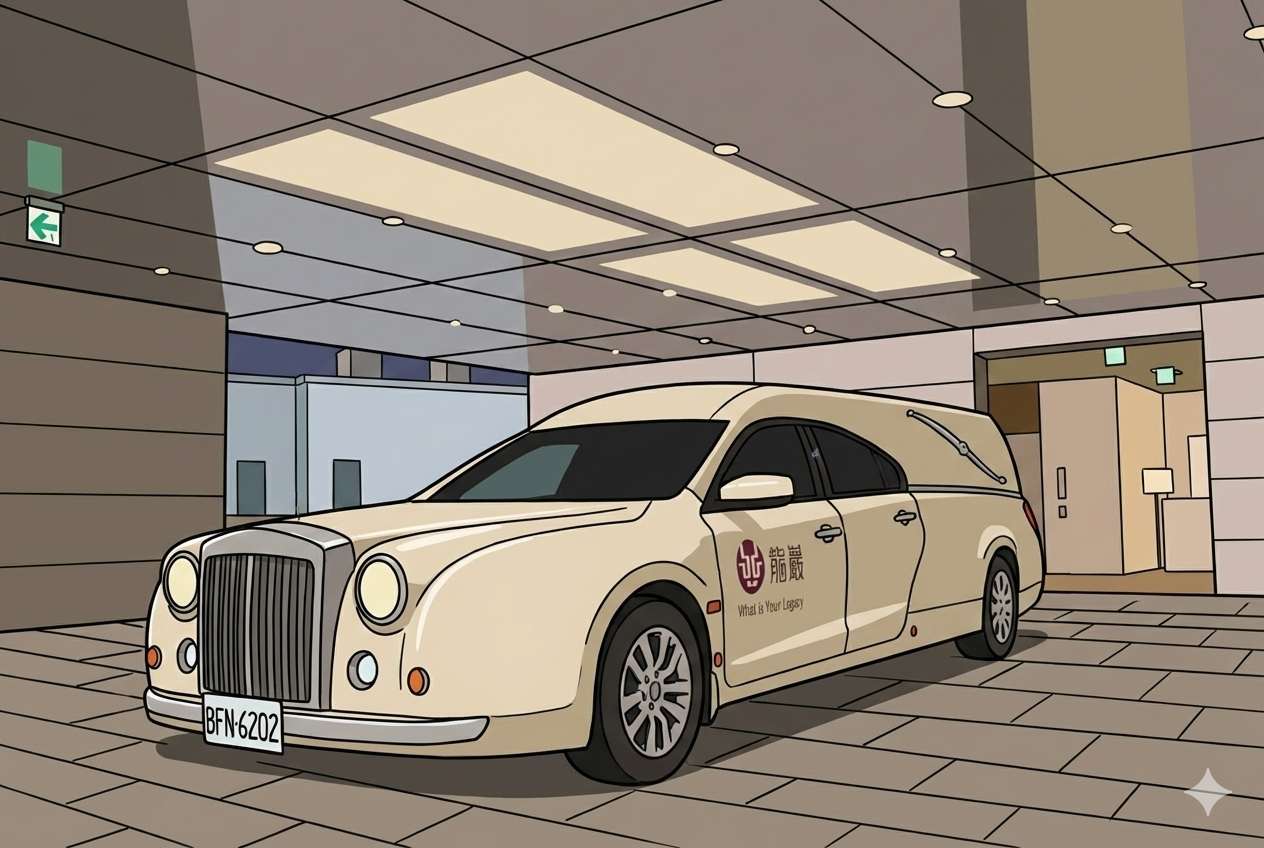 圖說:龍巖西式靈車承載往生者發引至殯儀館進行火化儀式,家人親友陪同一路送別。