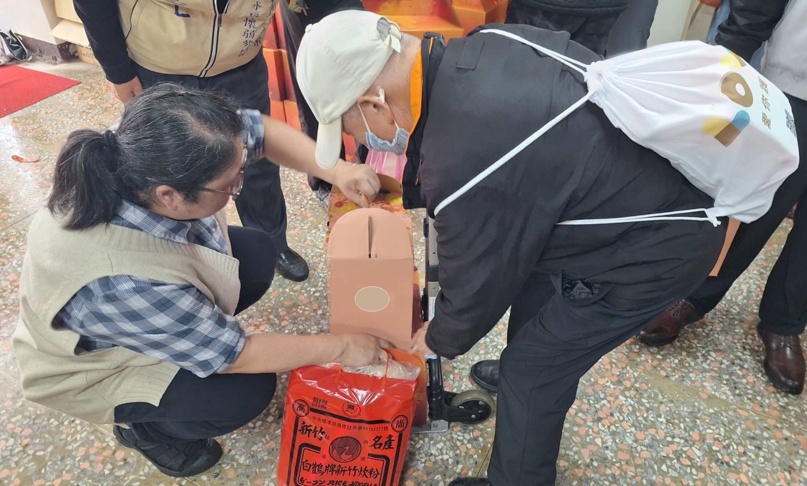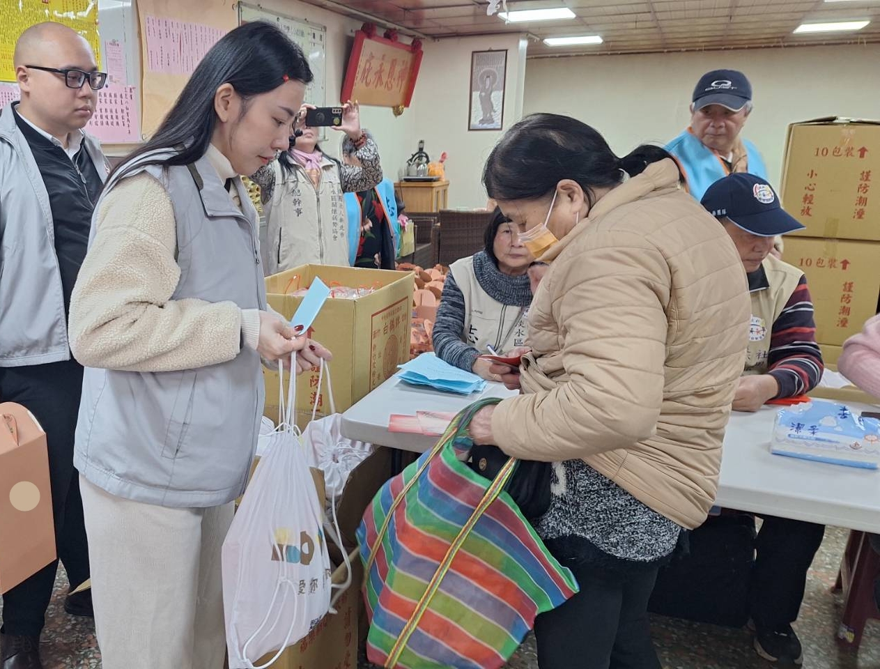 活動當天一早,現場由八仙宮與龍巖志工團隊共同協助進行物資準備與發放,引導長輩依序排隊領取。看到年長長輩行動較慢,志工主動上前幫忙提物資、協助背上後背包,讓長輩能安心將物資帶回家。在領取紅包與物資的過程中,現場氣氛輕鬆而溫暖。不少長輩一邊排隊,一邊與志工聊天,分享過年的準備與生活近況;長輩們拿到後背包後,紛紛笑著說:「這個背起來方便」、「裝東西剛剛好」、「這樣出門很輕鬆」,開心地將物資帶回家。簡單的互動與笑容,讓寒冷的天氣多了一份人情溫度。